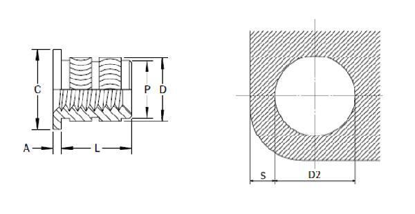 Резьбовая вставка ULTRALOK-F представляет собой круговую сквозную вплавляемую втулку с бортиком, предназначенную для монтажа в пластиковые изделия методом термовплавления или ультразвука. Также может использоваться как закладная резьба до формования. Данный тип часто называют вплавляемой гайкой или вплавляемой резьбовой втулкой.