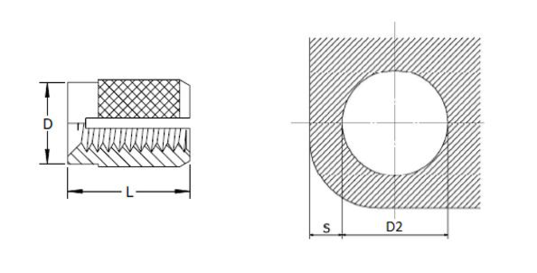 Резьбовые втулки для запрессовки в пластик PRESLOK-A предназначены для установки в уже сформированные изделия из термопластичных и термореактивных материалов. Являются аналогом распорных втулок B-LOK 841–842 и обеспечивают прочное резьбовое соединение без нагрева и последующей механической обработки. Конструкция с продольными прорезями и наружной ромбовидной накаткой создаёт плотное удержание и высокое сопротивление осевым, вибрационным и крутящим нагрузкам.