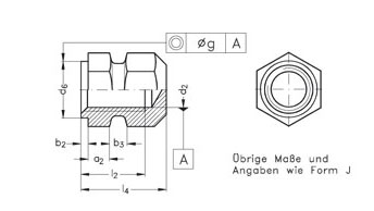 Резьбовая вставка DIN 16903 форма L — это шестигранная короткая закладная втулка закрытого типа, оснащённая глухим резьбовым отверстием и упорным кольцевым выступом. Втулка устанавливается в форму до заливки пластика, обеспечивая монолитное крепление без необходимости последующей механической обработки. Применяется как надёжная закладная деталь в процессе литья пластмасс под давлением.