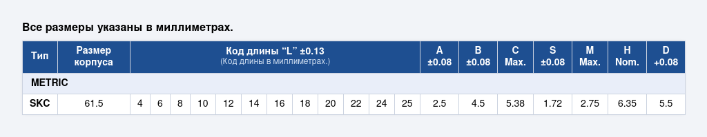 Материал исполнения:- SKC — нержавеющая сталь устойчива к коррозии и механическим нагрузкам, подходит для эксплуатации в промышленных и наружных условиях.