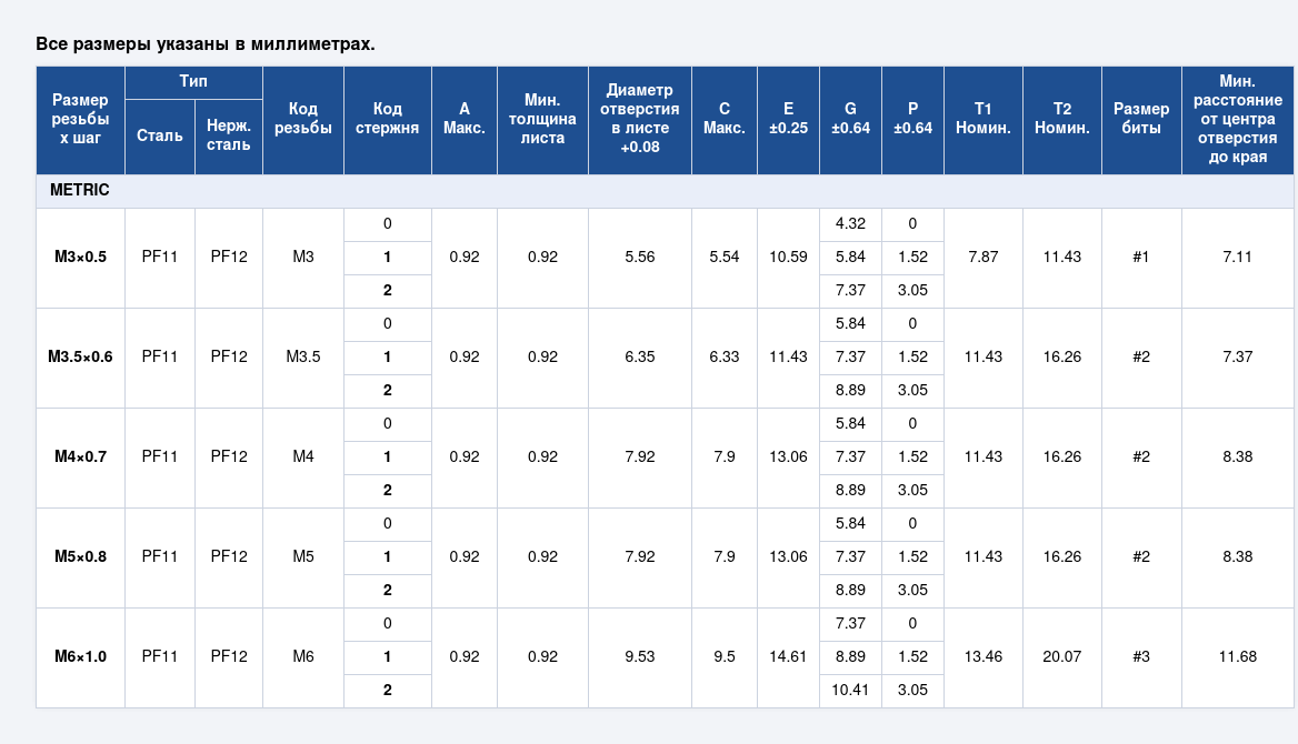Применение:Винты PF11 / PF12 широко используются в электронике, приборостроении, машиностроении, телекоммуникационном оборудовании и корпусных изделиях, где требуется надёжное и обслуживаемое соединение панелей.
