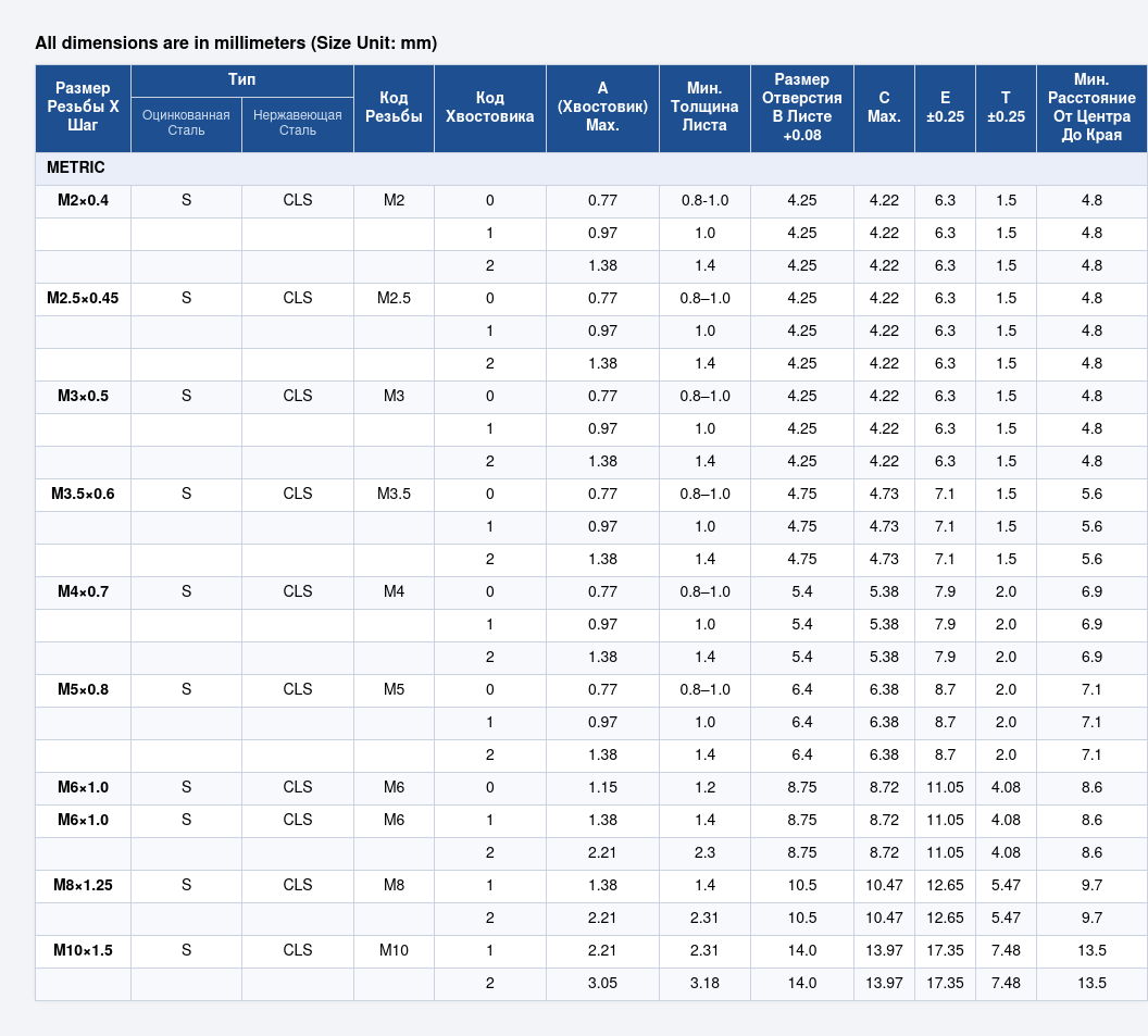 Применение:Гайки S / CLS / SP используются в машиностроении, приборостроении, электронике, строительстве и производстве металлических корпусов, где требуется прочное, долговечное и эстетичное резьбовое соединение.