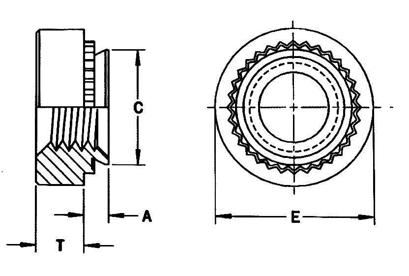 Гайка запрессовочная стандартная с зубчатой накаткой S / CLS / SP — это прочный и универсальный элемент крепежа, предназначенный для создания надёжного резьбового соединения в тонколистовых металлических конструкциях без применения сварки или клёпки.