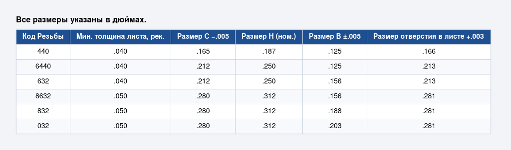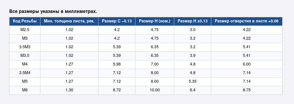 Применение:Машиностроение, электроника, приборостроение, строительство и производство металлических корпусов, где требуется точное и надёжное крепёжное соединение в тонколистовых материалах.