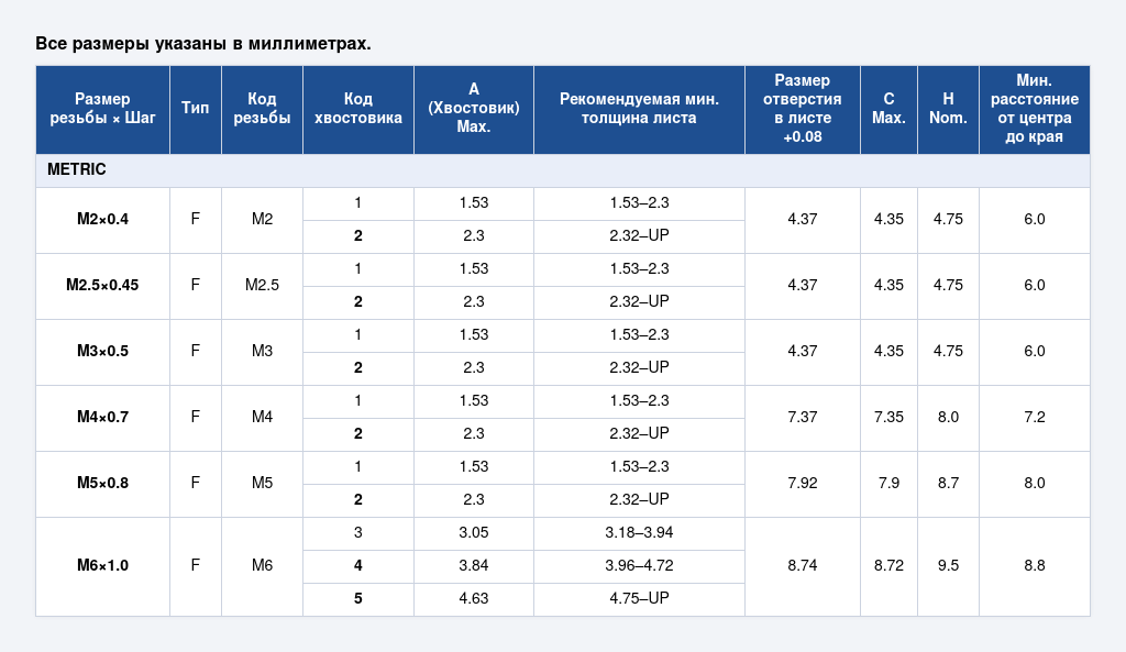 Применение:Гайки типа F применяются в электронике, приборостроении, машиностроении, строительстве и производстве металлических корпусов, где требуется ровная поверхность, эстетичный внешний вид и долговечное резьбовое соединение.