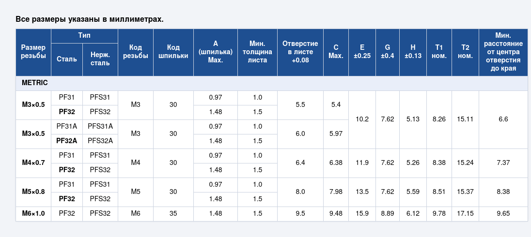 Материалы исполнения:- PF31 — сталь с электроникелевым покрытием, устойчива к износу и коррозии;