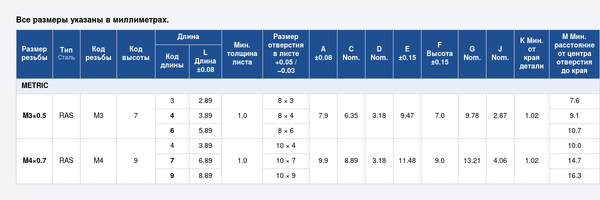 Применение:Прямоугольные впрессовываемые крепления RAS применяются в машиностроении, приборостроении, электронике, строительстве и корпусных конструкциях, где требуется высокая точность, долговечность и эстетичный внешний вид соединений.